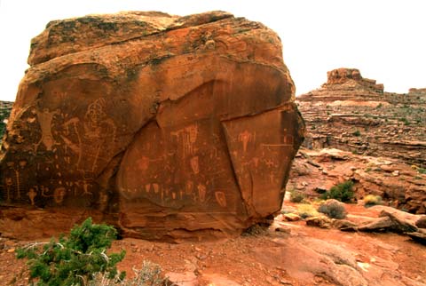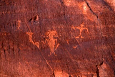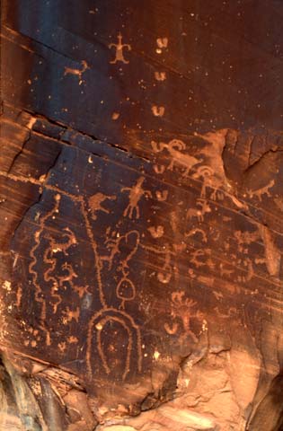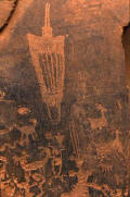 Although it is difficult to establish an exact age of rock art, some dating clues are easily identified. For example, whenever a horse and rider is depicted, we know the date to be after A.D. 1540 when the Spaniards reintroduced the horse to the New World. The presence of bows and arrows is presumed to indicate a date after A.D. 500, the generally accepted time period for their appearance in this region. For purposes of this guide, time periods are broken into generalized categories relating to the people believed to have made them.
